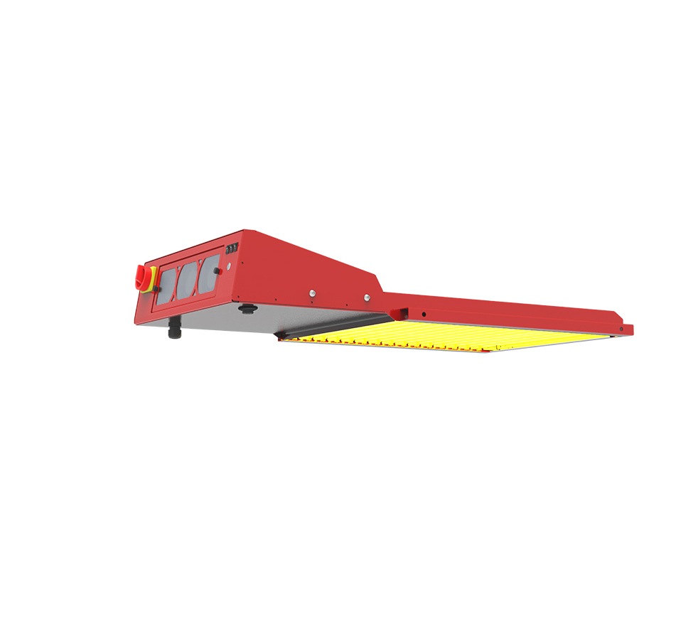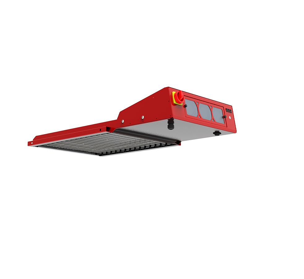 - A pallet sensor detects when the shirt is under the flash to automatically activate/deactivate – so the lamps are only switched on when needed; this reduces energy consumption compared to infrared flashes that are always on.