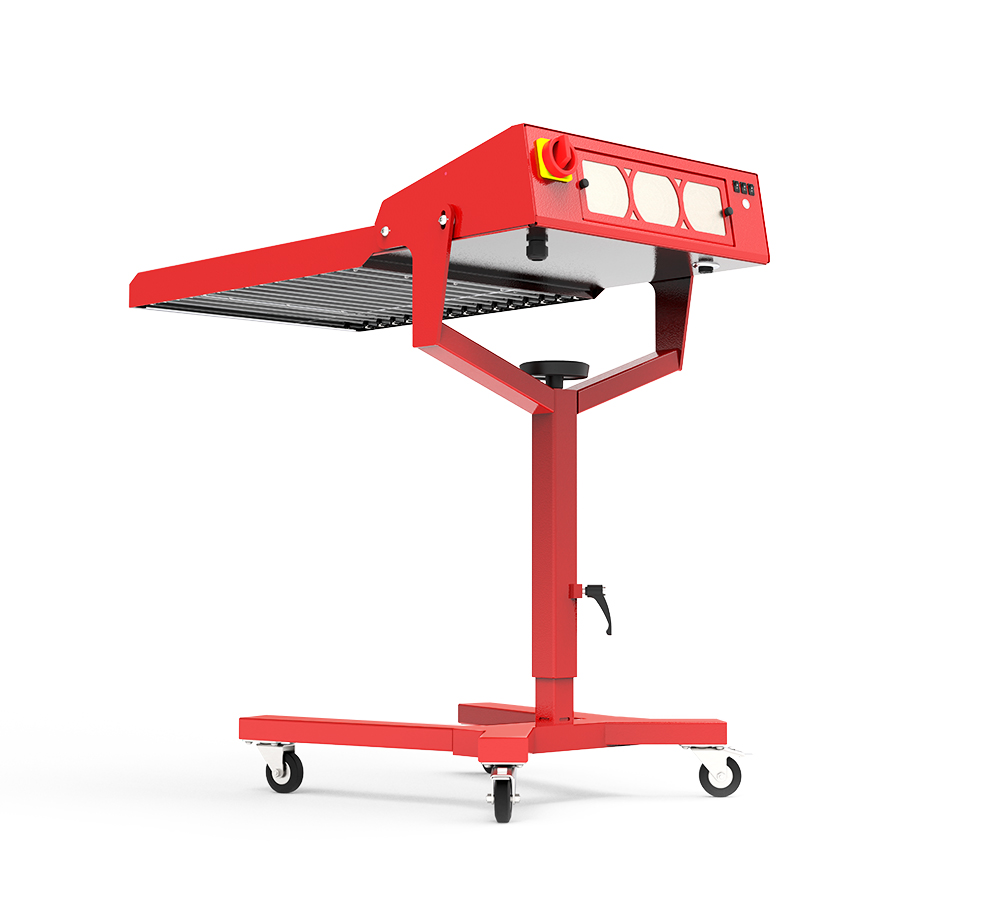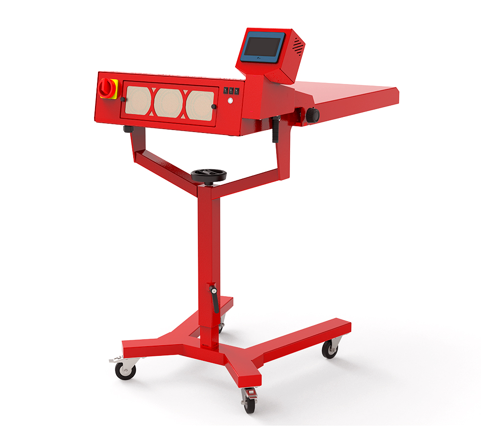 - Pallet sensor detects when a shirt is under the flash for automatic activation/deactivation – so the lamps are only “on” whenever necessary; reducing energy when compared to infrared flashes which are always on.