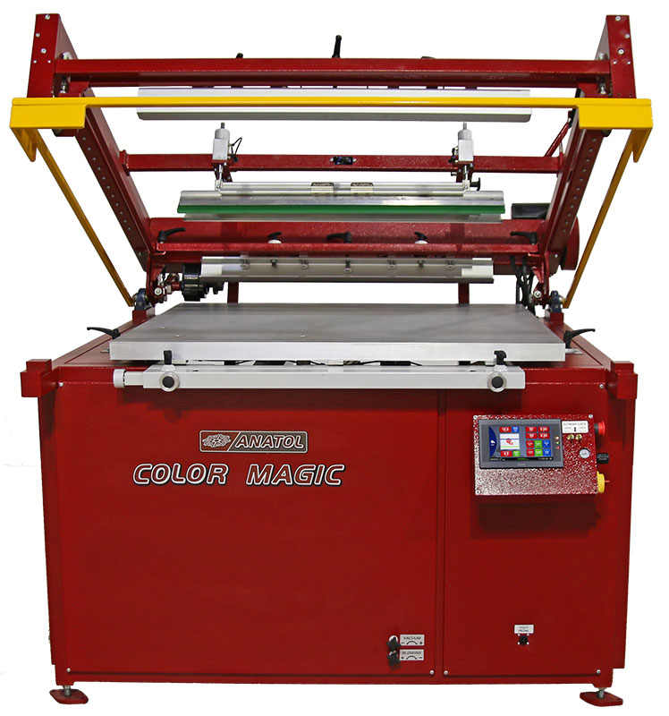 The Color Magic flatbed graphic press by Anatol is a perfect choice for professional printers. The Color Magic flatbed press helps printers create high-quality signage, posters, banners, and large-format graphics with speed and precision. This affordable, single-color press is designed for versatility, capable of printing on a wide range of substrates, including paper, glass, metal, vinyl, plastics, and virtually any flat stock. With support for both water-based and plastisol inks, the Color Magic delivers exceptional results for diverse printing projects.