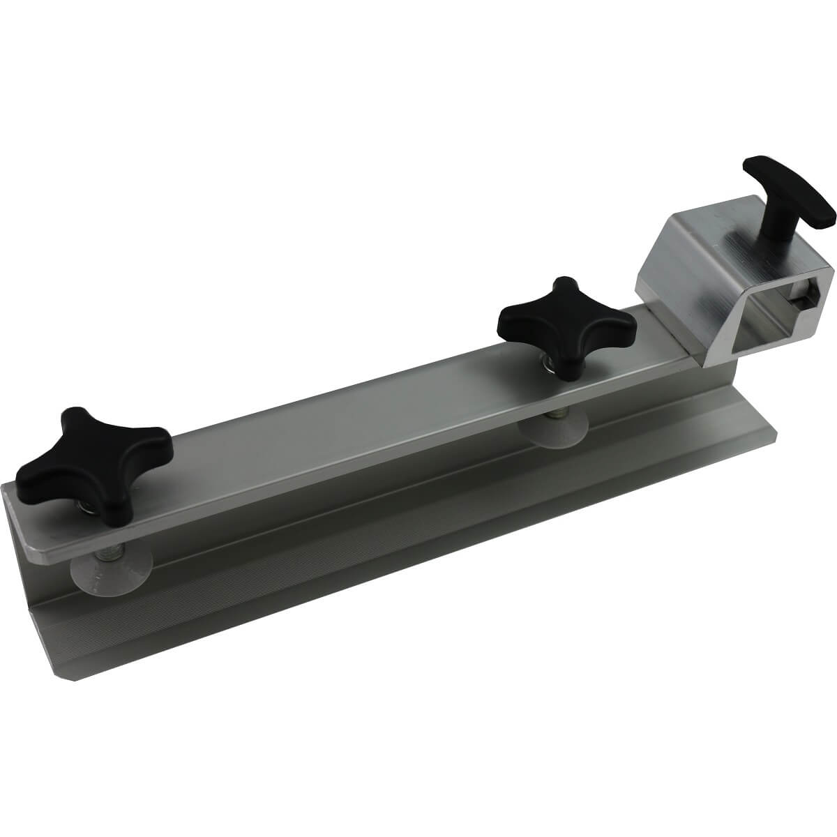 Left side of a mechanical screen clamp system installed on Anatol’s Thunder manual screen printing presses. The screen holder is made of aluminum to keep the press lightweight and at the same time to ensure stability. Once installed, the screen can be locked down with two handles mounted on the top of the assembly.